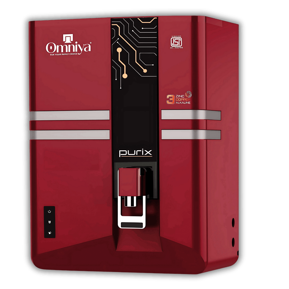 The PURIX Water Purifier offers advanced 7-stage purification with Zinc, Copper & Alkaline technology. Choose from 4 stunning colors to match your kitchen style. Enjoy 100% safe and mineral-rich water with PURIX’s powerful RO+UV+UF+TDS system, smart indicators, and elegant design by Omniya.